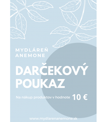 Darčekové poukazy je možné uplatniť na jednorázový nákup produktov na našom e-shope https://obchod.mydlarenanemone.sk/ a to zadaním špecifického kódu poukazu priamo v košíku.