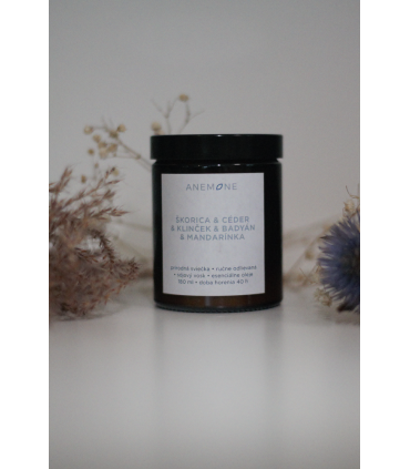 - sójový vosk, esenciálne oleje mandarínka, škorica, céder, klinček, badyán, bavlnený knôt