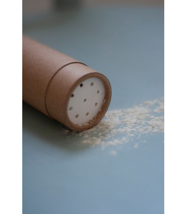 Zloženie nášho suchého šampónu sme vylepšovali vyše dvoch rokov. Snažili sme sa, aby bol nielen efektný, ale aby bol zároveň láskavý a šetrný k vašim vlasom a pokožke. Preto v ňom nájdete okrem kombinácie škrobov aj jemný ovsený hodváb, pivonkový a nimbový prášok na problémy s lupinami a na zmiernenie svrbenia pokožky, či ajurvédsky prášok kapoor kachli určený na spevnenie vlasov a podporu ich rastu. Okrem toho je šampón balený v praktickej papierovej tube s dierkami.